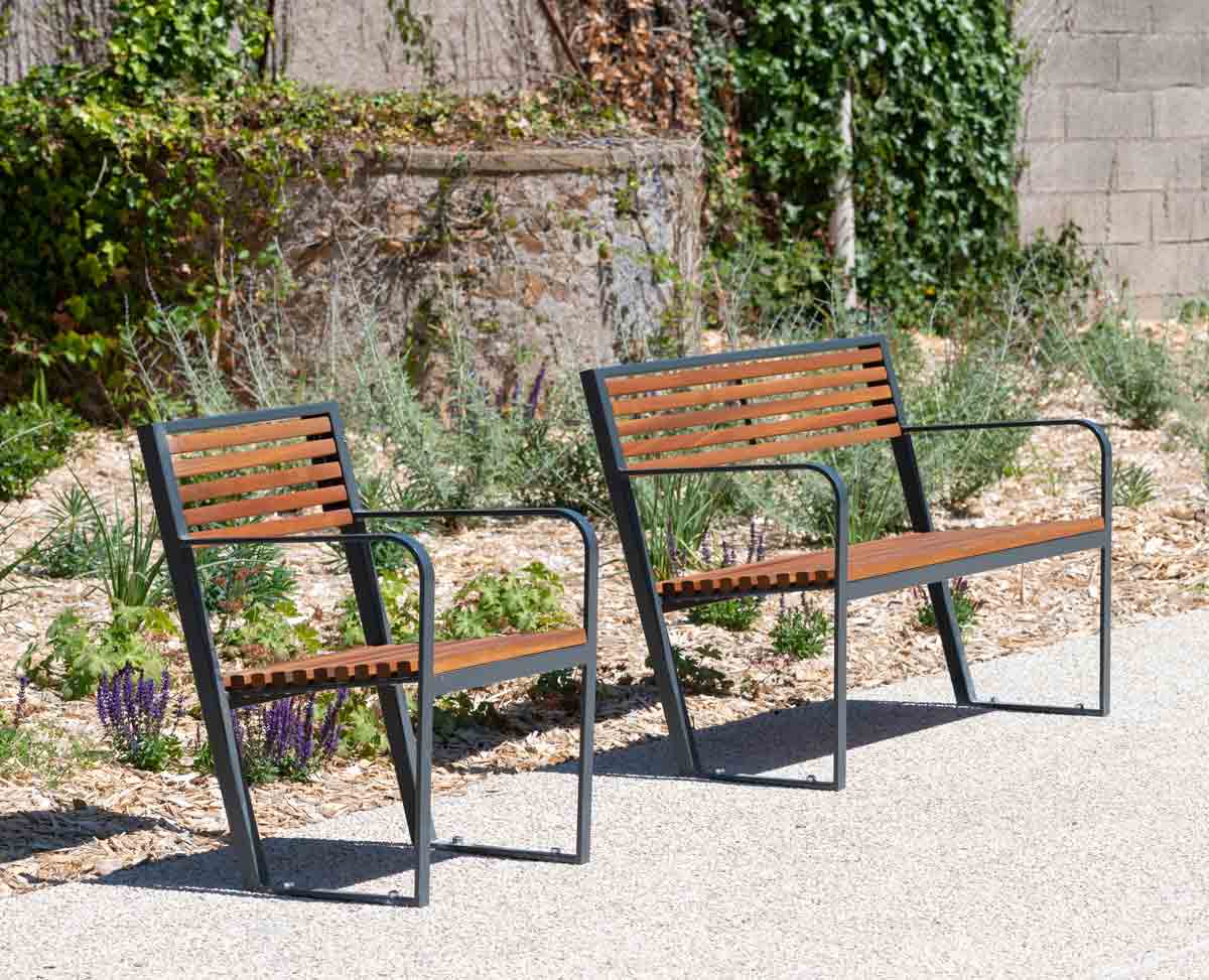 A minimal bench with remarkable discretion thanks to the transparencies formed by its backrest, the finesse of its armrests and of its feet. The Prague B30 bench constitutes a global answer combining shape, function, quality and durability. Its design based on small section wooden slats, is a continuity of contemporary architectural inspiration. Simple and economical, it embodies design for all.