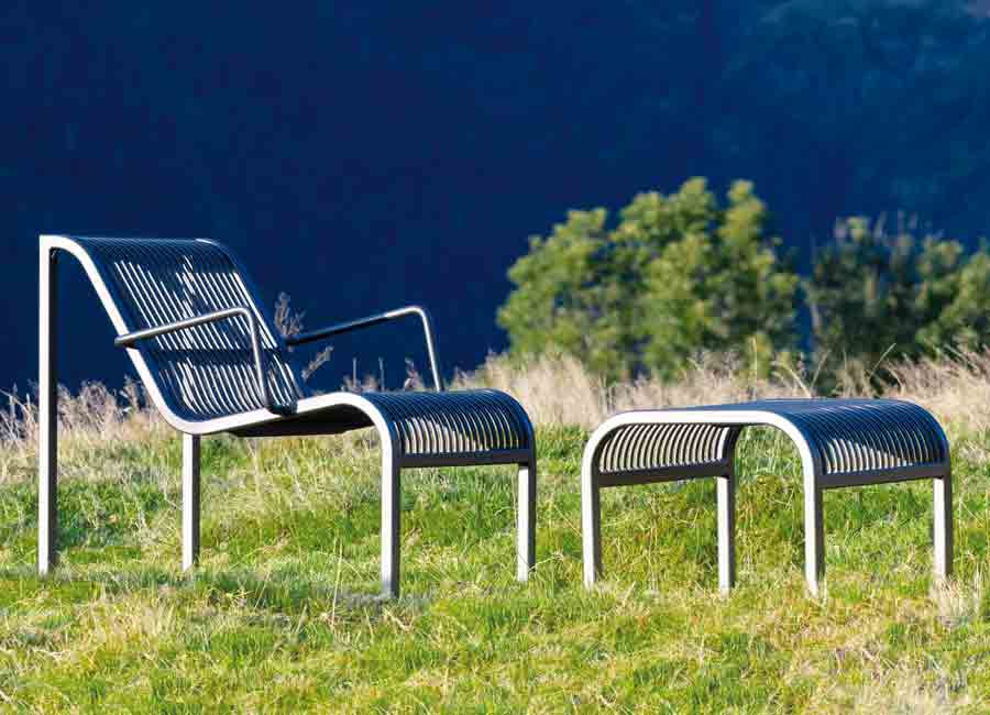 It embodies Aréa's founding conviction that urban furniture should be endowed with the comfort and choice previously reserved for furniture in the private sphere. The Cannes Lounger combines ergonomics, privacy, modernity and simplicity. It is robust, made of 100% powder-coated steel, which makes it fully recyclable and always clean. Available with or without armrests.