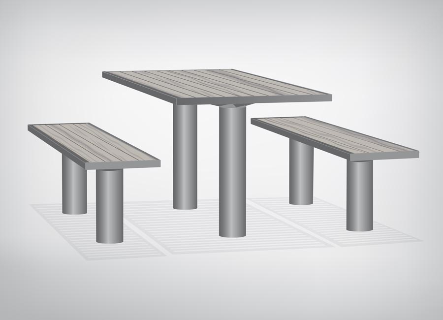 The Toronto wood picnic ensemble holds its promise of picnicing in public space on a furniture that feels warm to the touch. Its cylindrical frame allows easy access for people with reduced mobility (PRM). Its construction combines the strength of steel with the softness of wood.