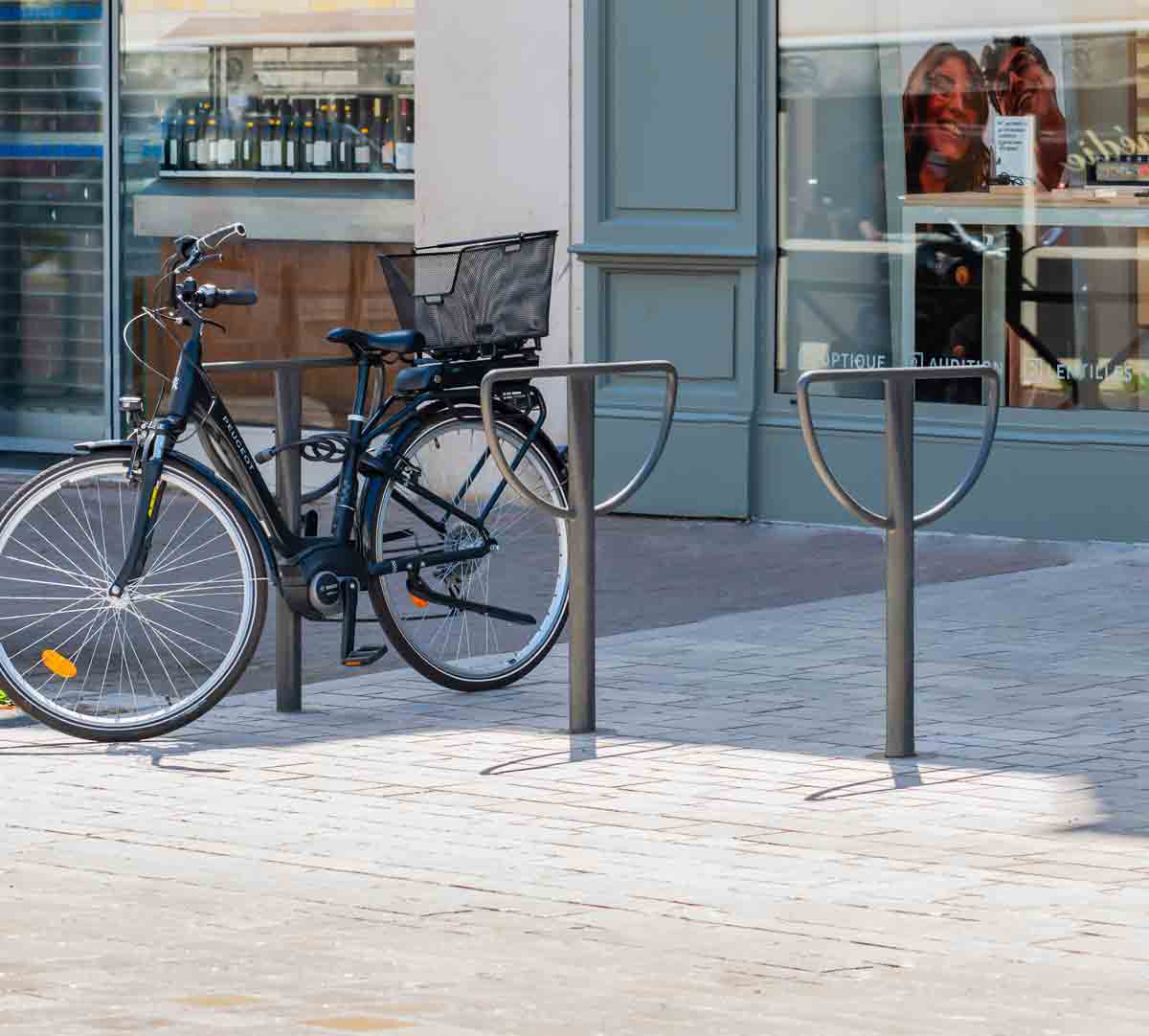 Its totally refined and universal design put it entirely into service with its function. The crushing of the top of the tube gives it an elliptical shape which add a discreet originality to its obvious simplicity. Designed without any constraints linked to coordination with existing barriers, the Nantes bike stand is a mere essence of the object and its duty: nothing to add, nothing to take away.