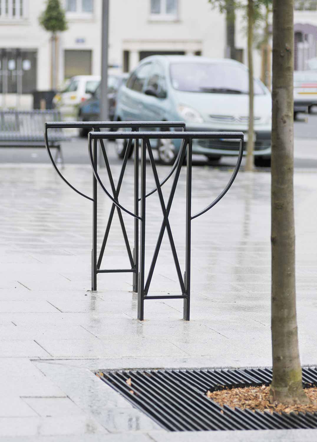 It is a basic of Aréa design as it is one of the first bike stands of the brand. A fruit of the labor of the analysis and deduction carried out after thorough exchanges of ideas with the cities and user associations, it authorizes a secure and simple fastening to the wheel and frame thanks to its half-wheel form, which has become emblematic.