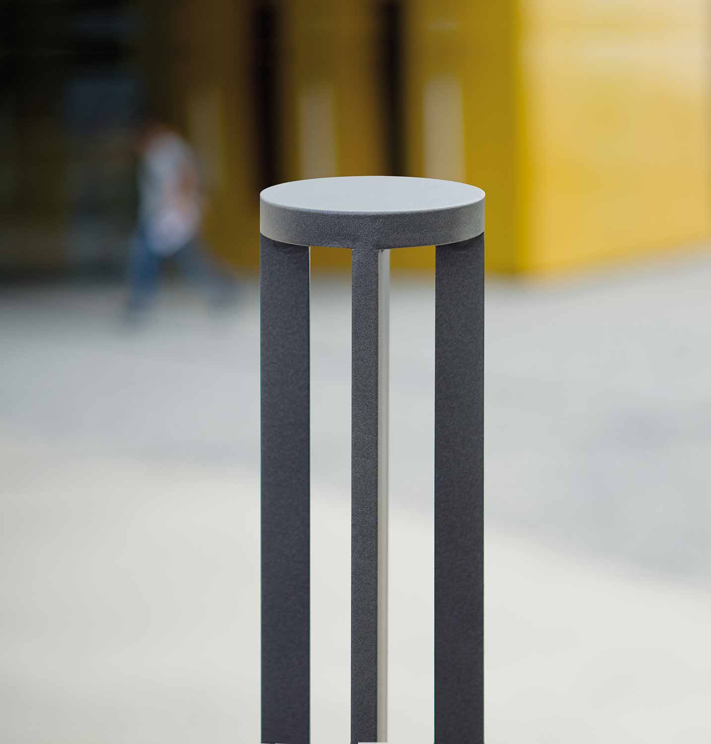 Its design, both round and square, jazzes up the traditional slim bollard and bestows upon it a highly qualitative, graphic and minimalist aspect. Its construction equally guarantees the Antarès slim bollard's extreme resistance as well as a contrast between transparency / opacity in accordance with the angle in which one sees it. It will be oriented to be both light on the eye for pedestrians combined with a stronger and dissuasive presence for motorists.