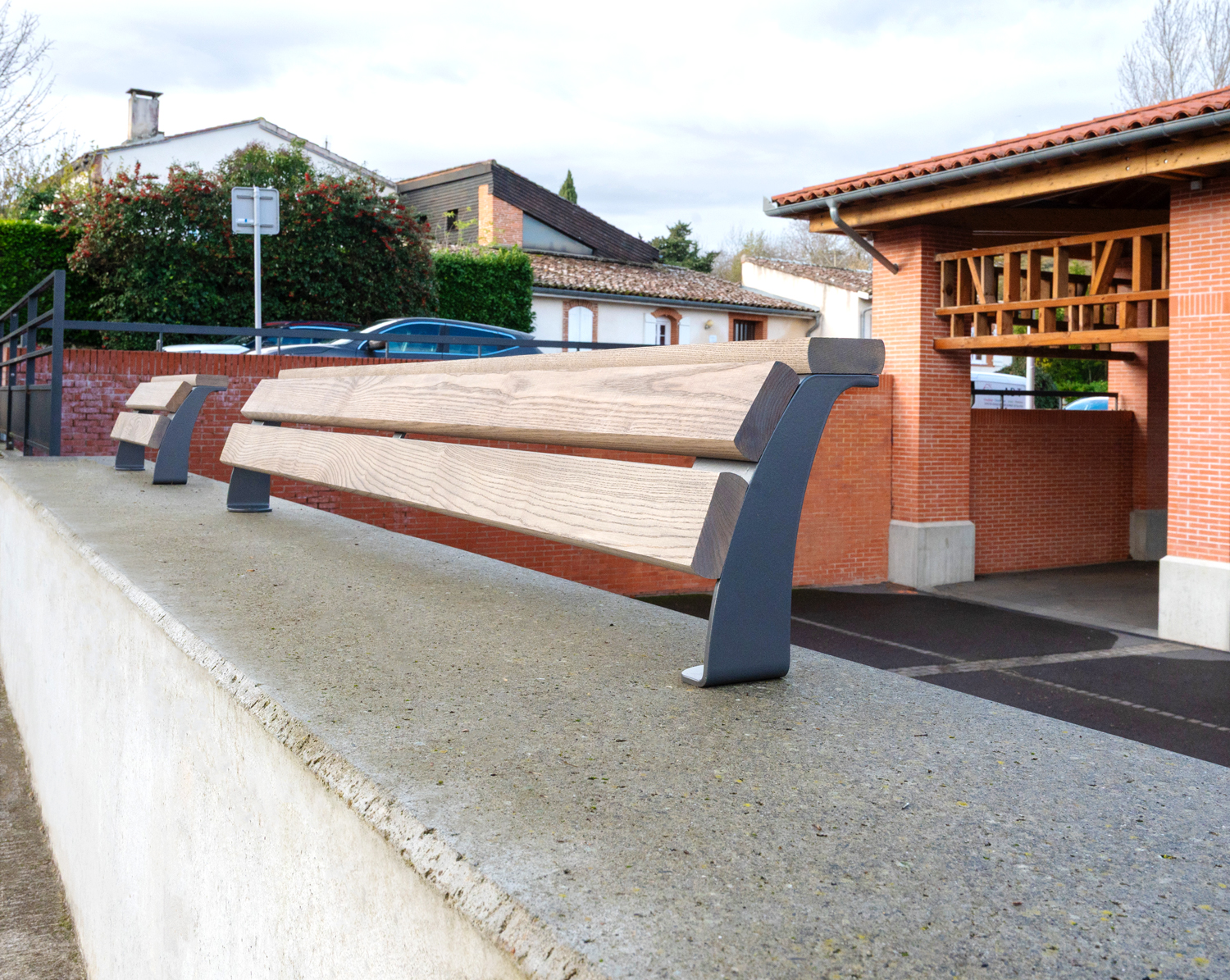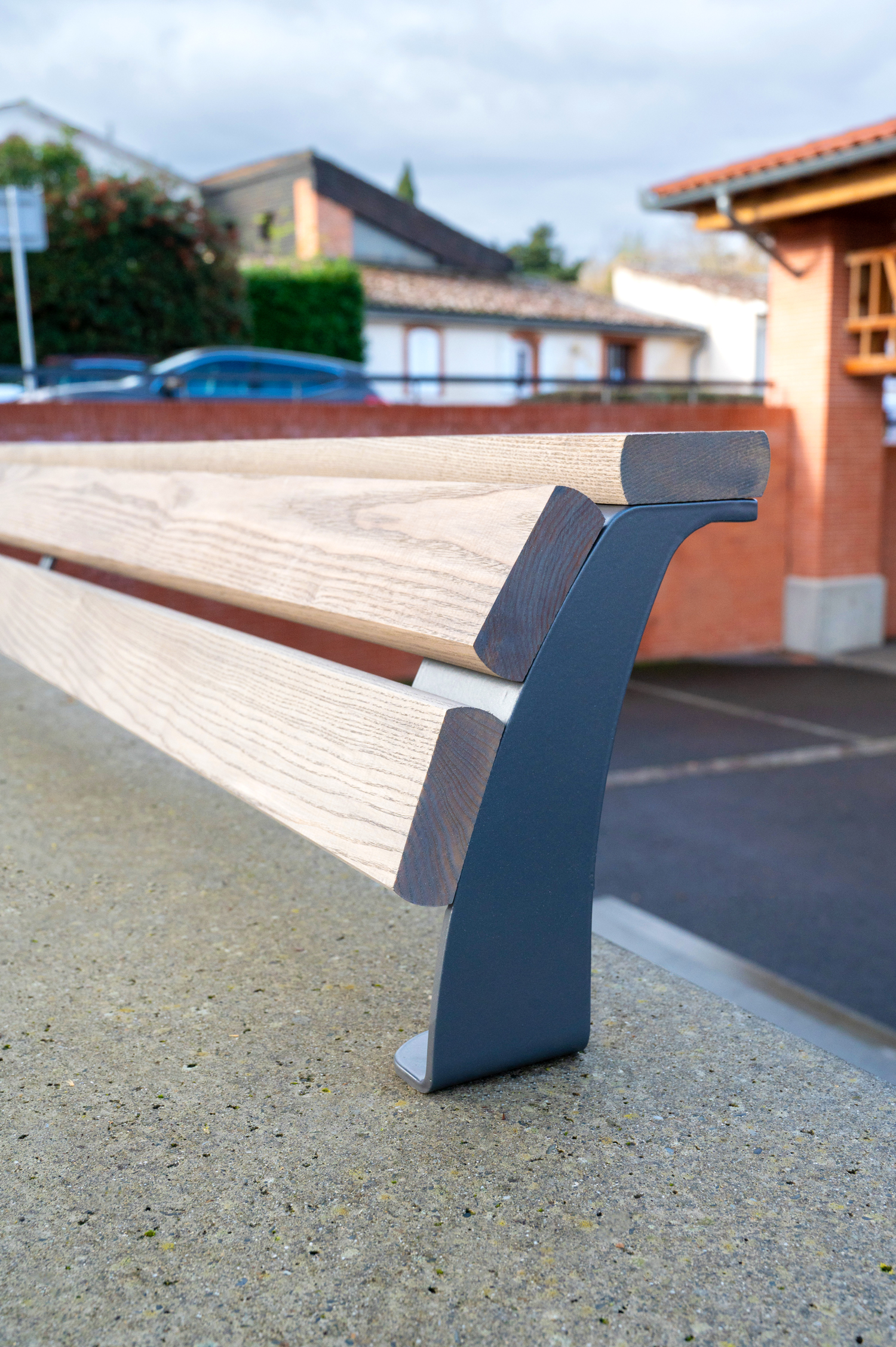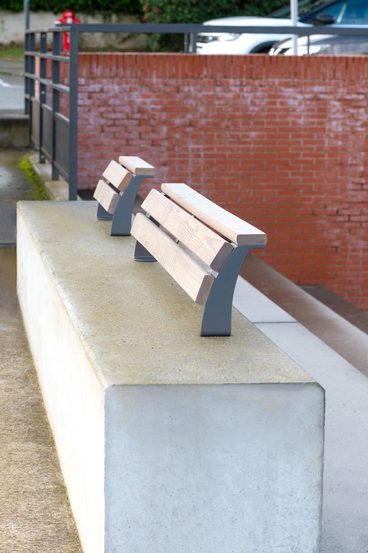 Being able to rest your back or lean on your elbows while seated on the numerous concrete benches that are installed in public spaces, is an important need amongst users. The Atlantique wood backrest can be fitted on its own or with the atlantic wood top seatings. It makes concrete benches more wellcoming with their warm wood surface, available in ashwood or pine and in two different sizes (0,66 m and 1,6 m).