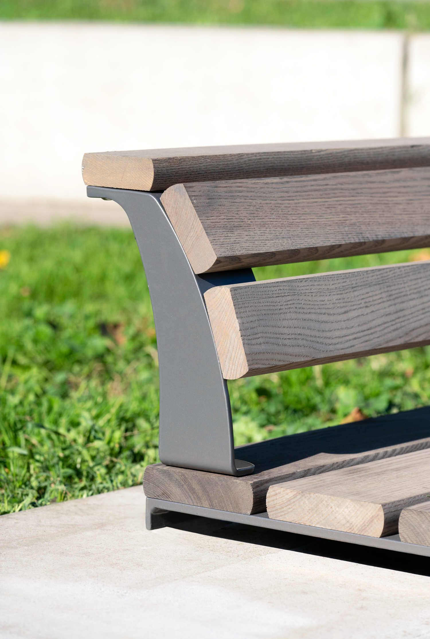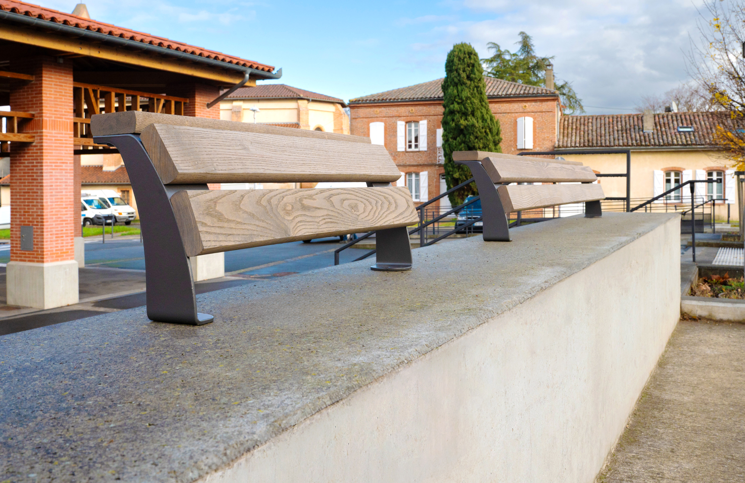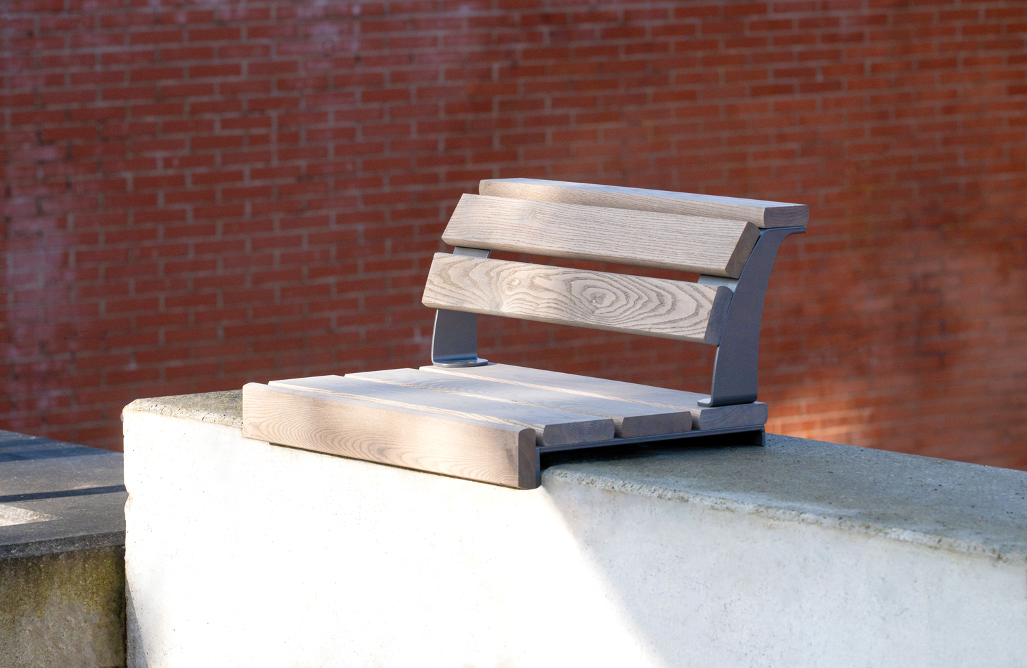 Being able to rest your back or lean on your elbows while seated on the numerous concrete benches that are installed in public spaces, is an important need amongst users. The Atlantique wood backrest can be fitted on its own or with the atlantic wood top seatings. It makes concrete benches more wellcoming with their warm wood surface, available in ashwood or pine and in two different sizes (0,66 m and 1,6 m).